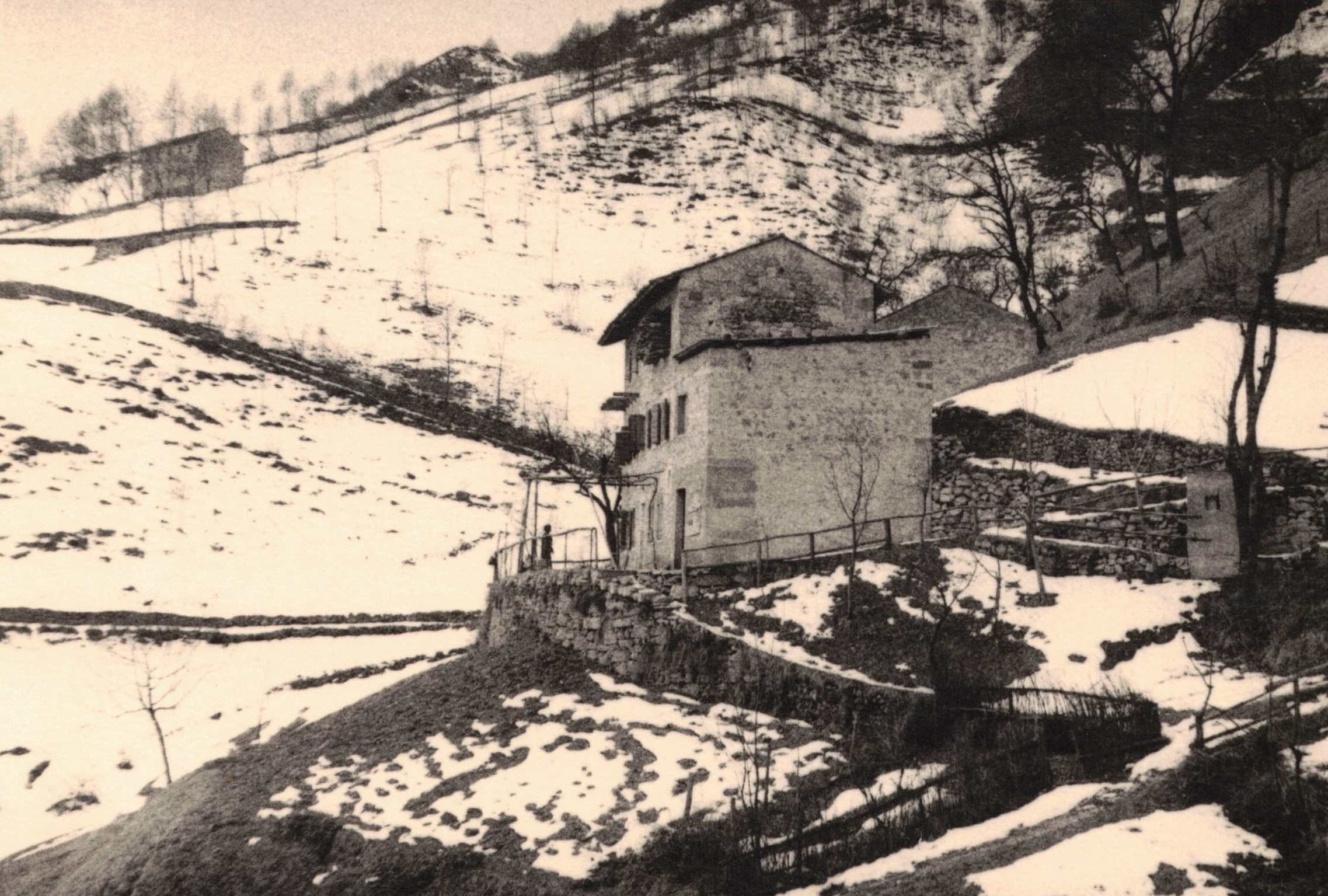 Alzando lo sguardo sopra Erto, si scorgono tra gli alberi tre borgate: sono Forcai, Sciavalle e Valcassana.