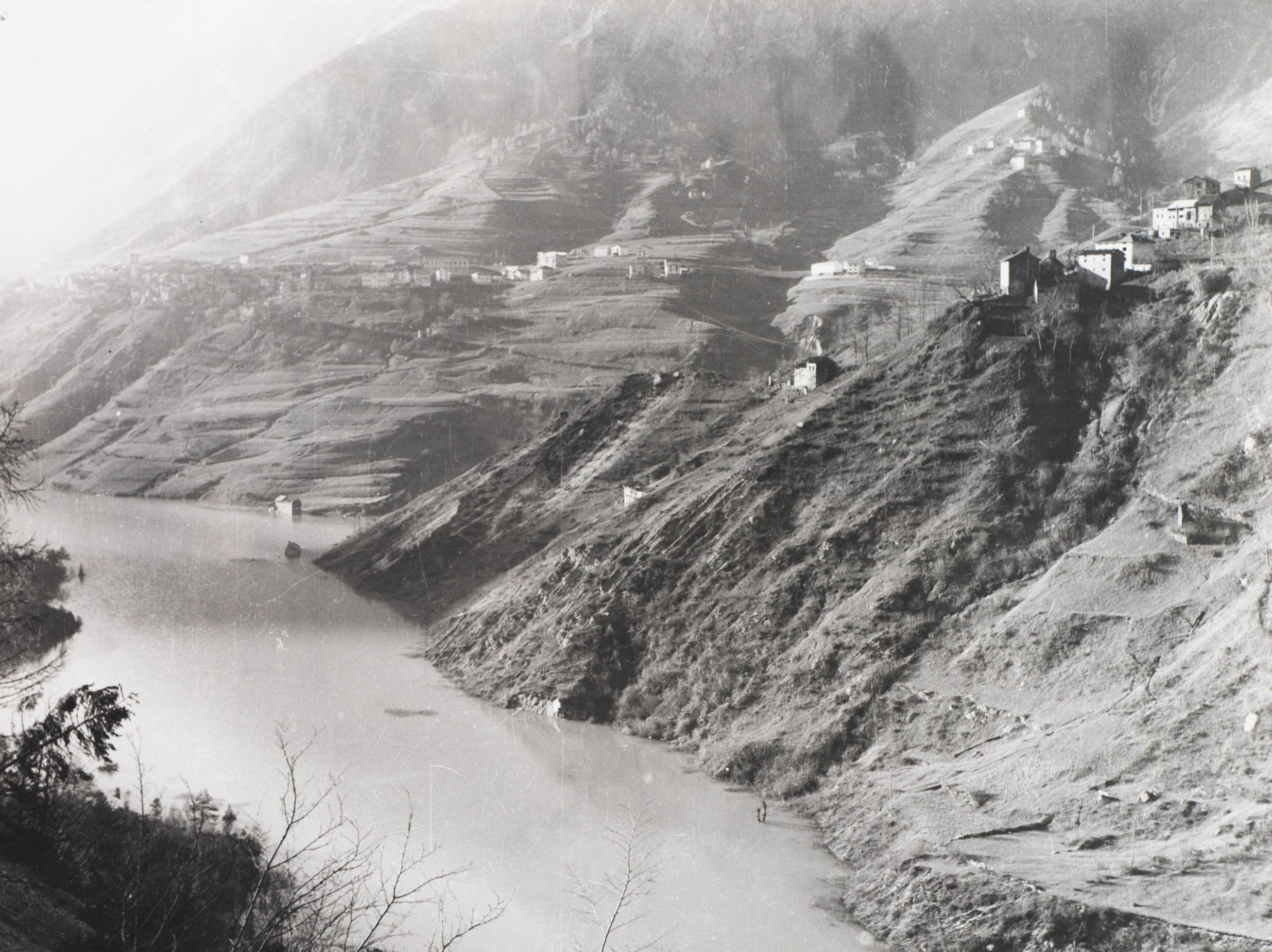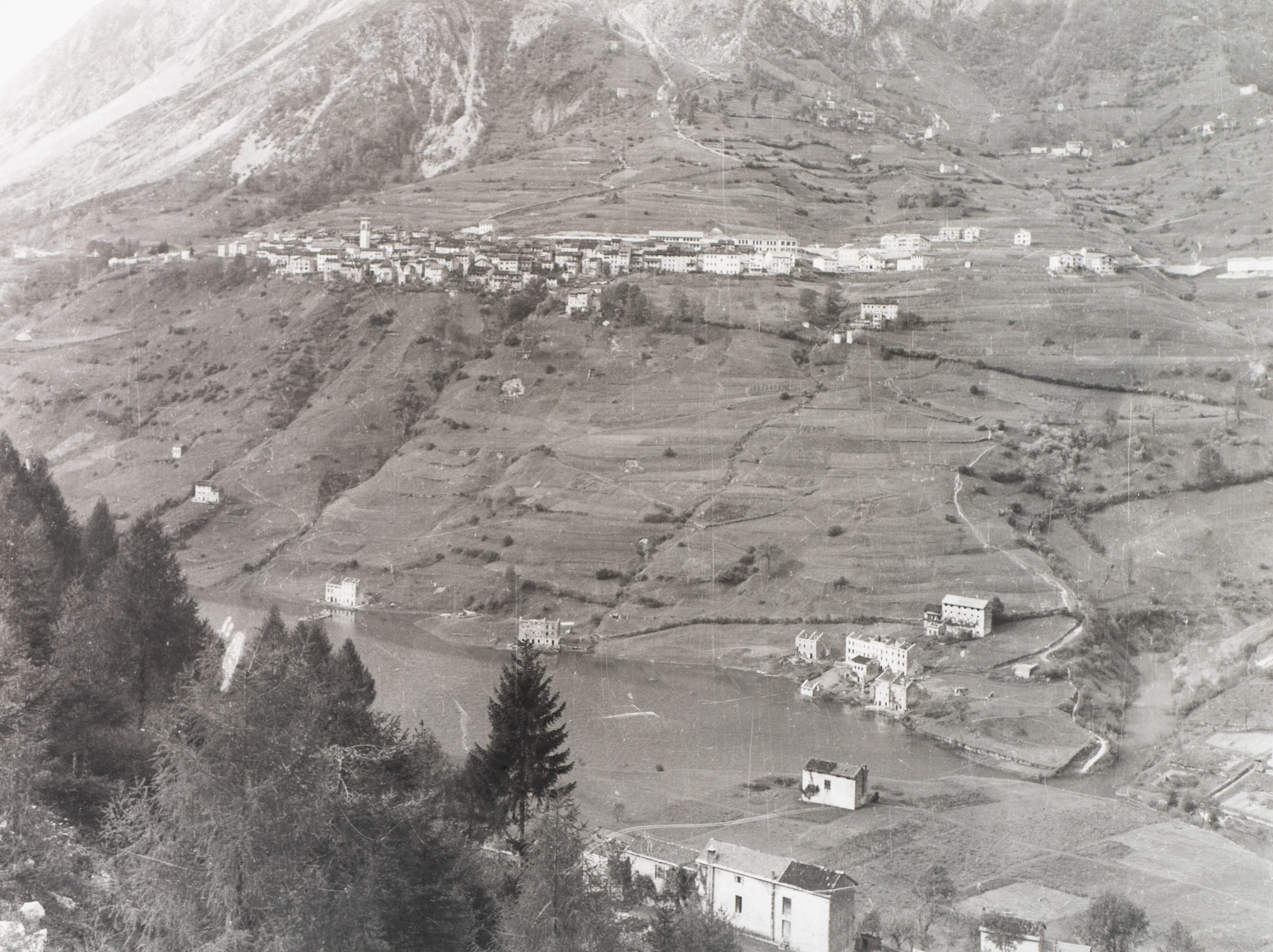 Un’altra località Mulini si trovava invece proprio sotto l’abitato di Erto. Entrambe le borgate furono espropriate in previsione dei lavori di costruzione della diga e finirono sommerse dal lago.